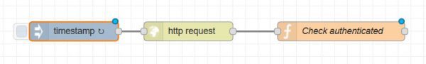 So this was checking when authentication worked. Historically my approach would have been try various things including leaving some time, manually log into the app and see if it worked. But this time I took a new approach. I know how to create an authenticated request to Domino and check whether it works or not - the code's openly available on my Node-RED demo from Engage, and I think I got that JavaScript from OpenNTF's login area. To get something that polled every 30 seconds and told me quickly and easily when it logged in successfully took three nodes and a few minutes: