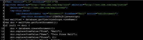 However, what is interesting is what happens if you then cut and paste the xp:this.data entity and its descendants and move it so it is now a child of the xp:view, the XPage itself. It will now look like this: