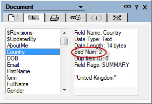 For each Notes Item, a number of pieces of information is stored – field name, data type, data length, duplicate item ID and field flags (e.g. SUMMARY, NAMES etc). But the most useful for troubleshooting the state of a document at a particular moment in time is Seq Num.