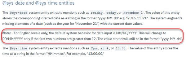 One of the nice things about Watson Assistant is natural language parsing of dates using the @sys-date system entity. But I encountered a rather significant issue:
